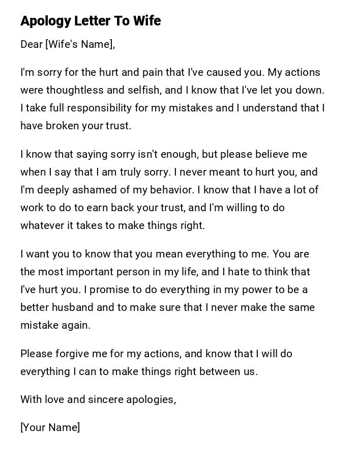 Apology Letter To Wife