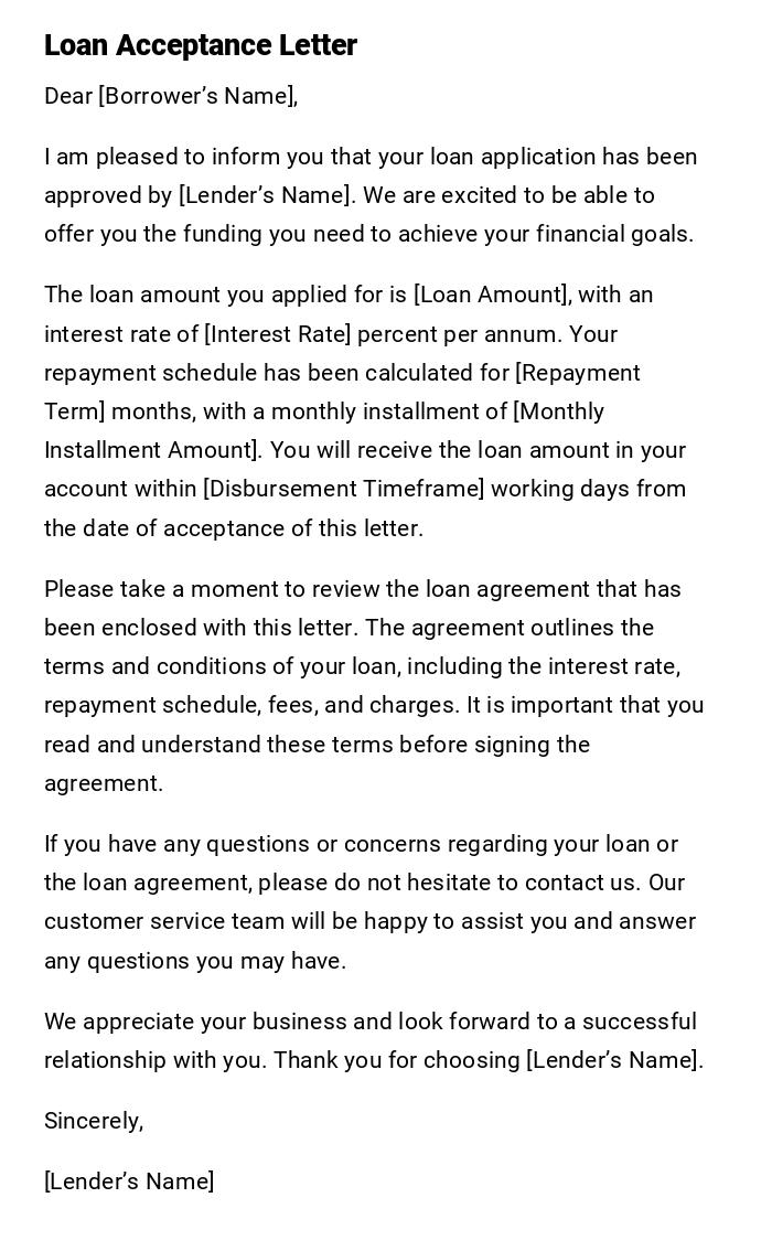 Formatting Guidelines for Professional Loan Acceptance Letters
