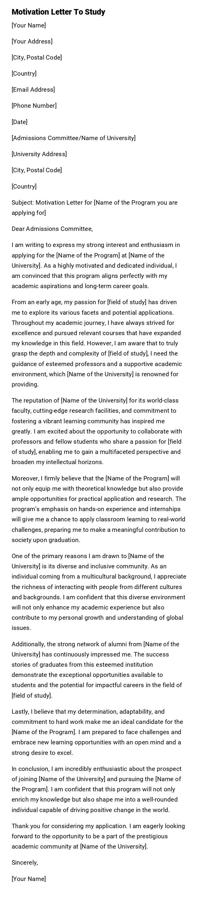 Motivation Letter To Study