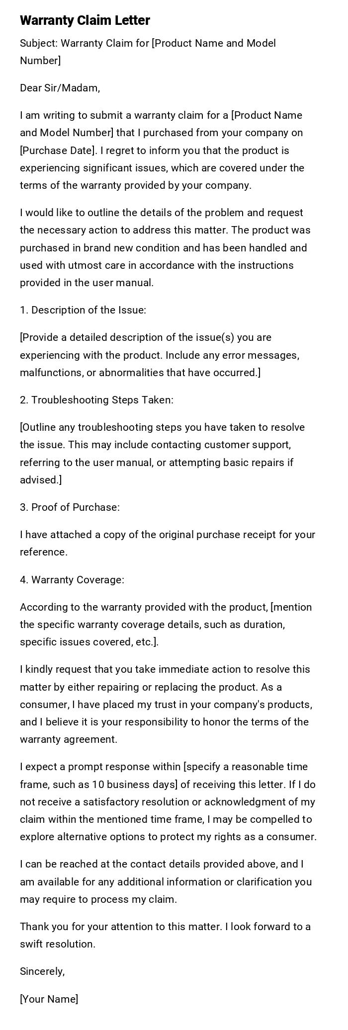 Warranty Claim Letter